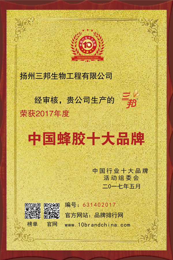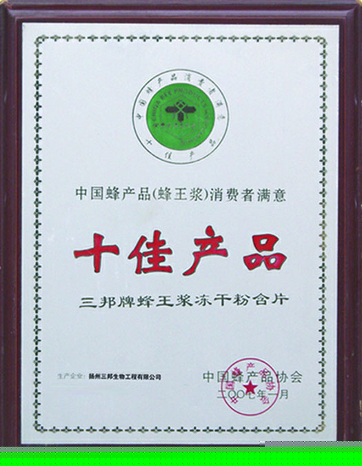 中國(guó)蜂產(chǎn)品消費(fèi)者滿意十佳產(chǎn)品